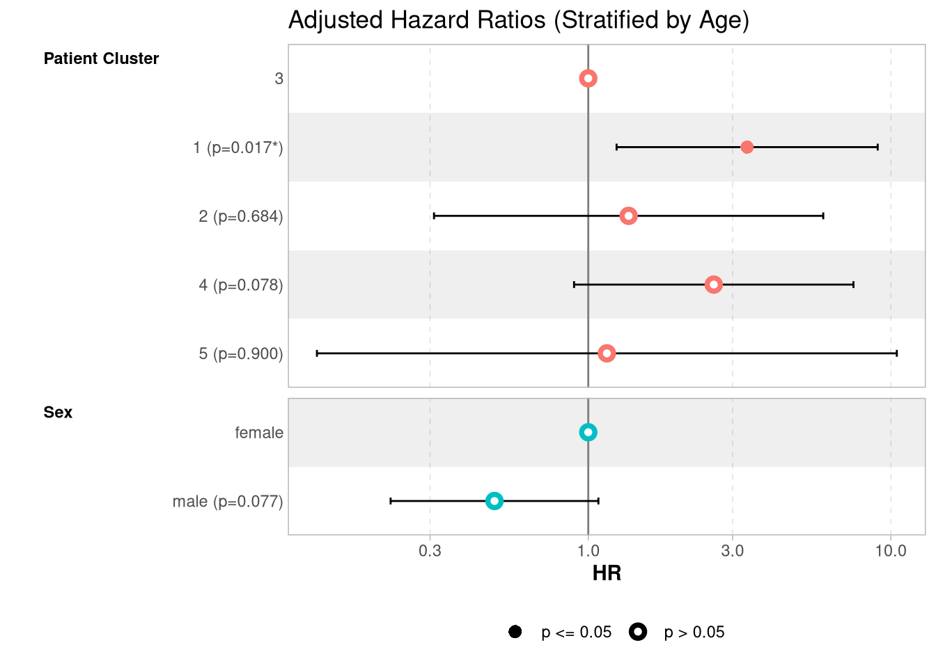 The statistical result above is derived from a Cox proportional model, adjusted for age_baseline + gender + race.